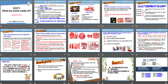 关键词:《What are the shirts made of?》教学课件,人教版九年级上册英语课件,九年级英语幻灯片课件下载,《What are the shirts made of?》PPT课件下载,.ppt格式