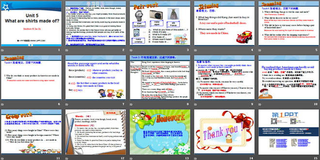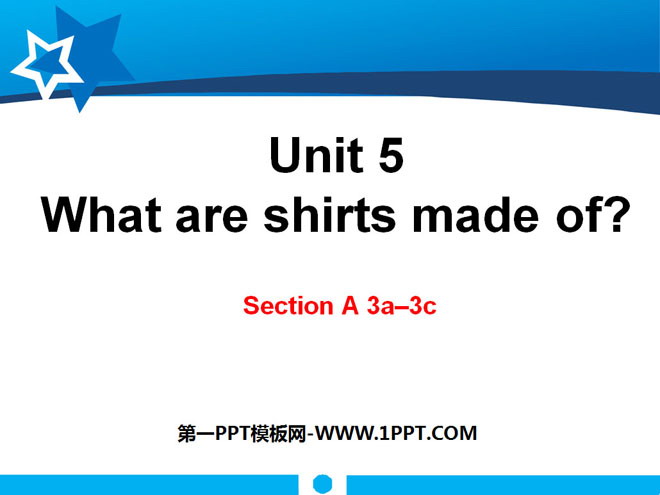 关键词:《What are the shirts made of?》教学课件,人教版九年级上册英语课件,九年级英语幻灯片课件下载,《What are the shirts made of?》PPT课件下载,.ppt格式