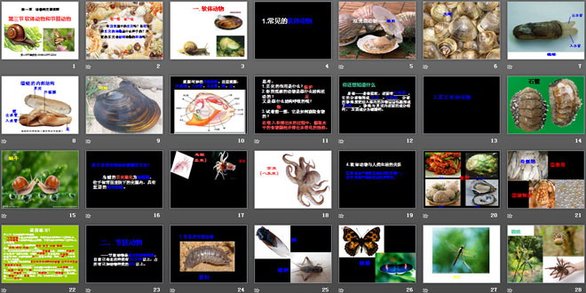 关键词:动物的主要类群教学课件,软体动物和节肢动物教学课件,人教版八年级上册生物PPT课件下载,八年级生物幻灯片课件下载,动物的主要类群PPT课件下载,软体动物和节肢动物PPT课件下载,.PPT格式;