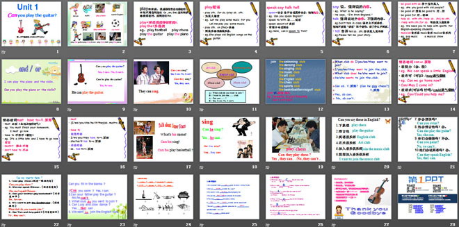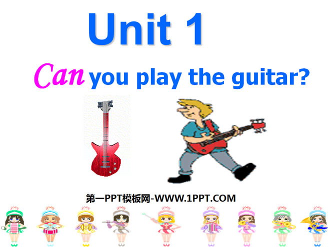 关键词:《Can you play the guitar?》教学课件,人教版七年级下册英语课件,七年级英语幻灯片课件下载,《Can you play the guitar?》PPT课件下载,.ppt格式