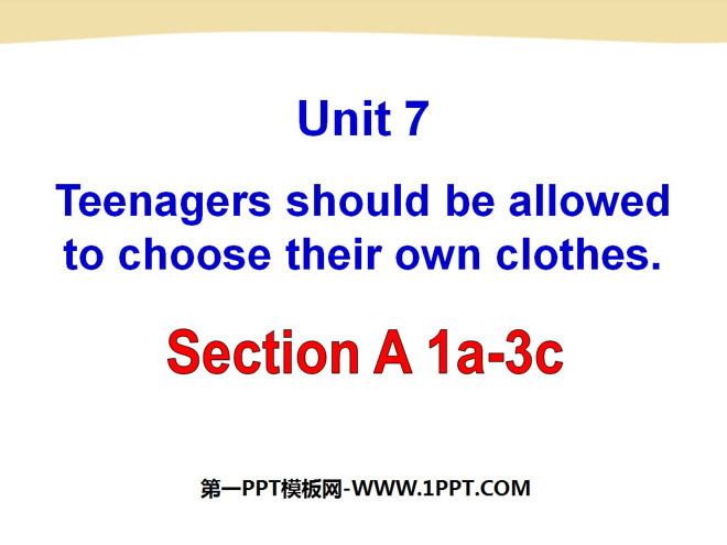 关键词:《Teenagers should be allowed to choose their own clothes》教学课件,人教版九年级上册英语课件,九年级英语幻灯片课件下载,《Teenagers should be allowed to choose their own clothes》PPT课件下载,.ppt格式