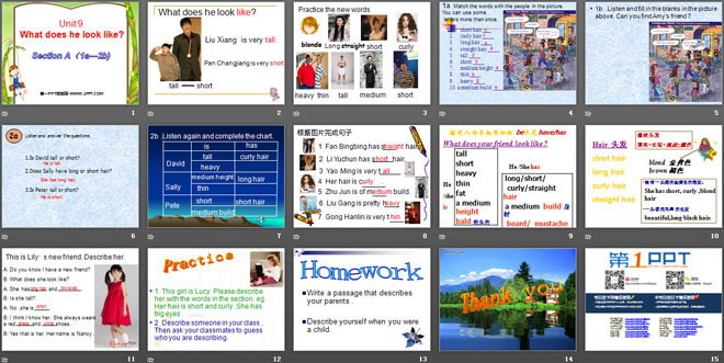 关键词:《What does he look like?》教学课件,人教版七年级下册英语课件,七年级英语幻灯片课件下载,《What does he look like?》PPT课件下载,.ppt格式
