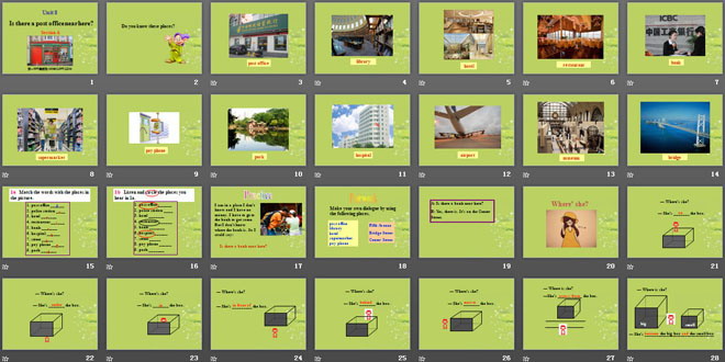关键词:《Is there a post office near here?》教学课件,人教版七年级下册英语课件,七年级英语幻灯片课件下载,《Is there a post office near here?》PPT课件下载,.ppt格式
