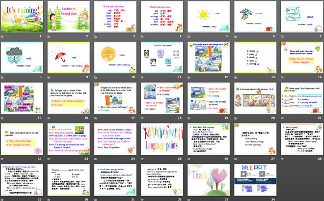 关键词:《It’s raining》教学课件,人教版七年级下册英语课件,七年级英语幻灯片课件下载,《It’s raining》PPT课件下载,.ppt格式