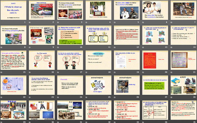 关键词:《I'll help to clean up the city parks》教学课件,人教版八年级下册英语课件,八年级英语幻灯片课件下载,《I'll help to clean up the city parks》PPT课件下载,.ppt格式