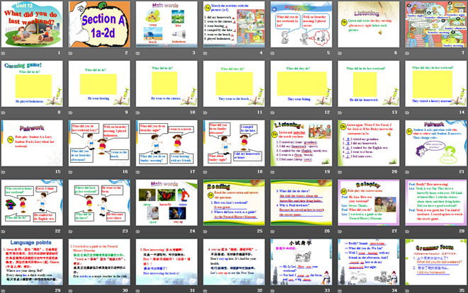 关键词:《What did you do last weekend?》教学课件,人教版七年级下册英语课件,七年级英语幻灯片课件下载,《What did you do last weekend?》PPT课件下载,.ppt格式