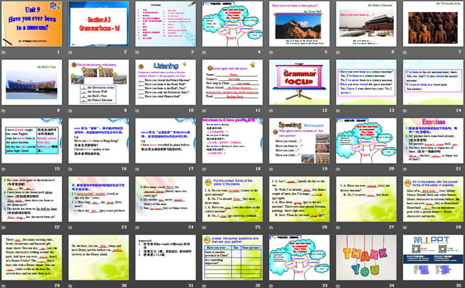 关键词:《Have you ever been to a museum?》教学课件,人教版八年级下册英语课件,八年级英语幻灯片课件下载,《Have you ever been to a museum?》PPT课件下载,.ppt格式