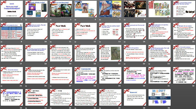 关键词:《Have you read Treasure Island yet?》教学课件,人教版八年级下册英语课件,八年级英语幻灯片课件下载,《Have you read Treasure Island yet?》PPT课件下载,.ppt格式