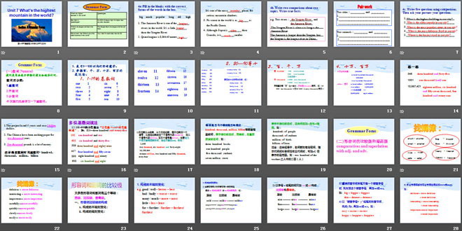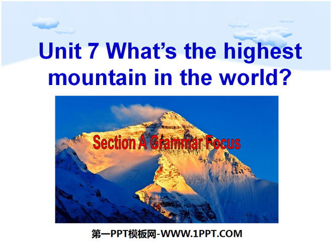 关键词:《What's the highest mountain in the world?》教学课件,人教版八年级下册英语课件,八年级英语幻灯片课件下载,《What's the highest mountain in the world?》PPT课件下载,.ppt格式