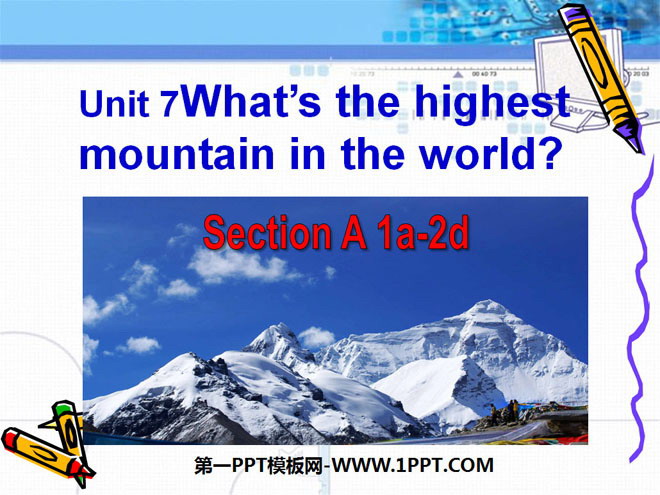 关键词:《What's the highest mountain in the world?》教学课件,人教版八年级下册英语课件,八年级英语幻灯片课件下载,《What's the highest mountain in the world?》PPT课件下载,.ppt格式