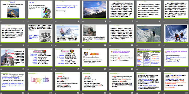 关键词:《What's the highest mountain in the world?》教学课件,人教版八年级下册英语课件,八年级英语幻灯片课件下载,《What's the highest mountain in the world?》PPT课件下载,.ppt格式