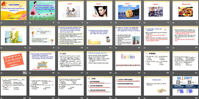 关键词:《Sad movies make me cry》教学课件,人教版九年级下册英语课件,九年级英语幻灯片课件下载,《Sad movies make me cry》PPT课件下载,.ppt格式