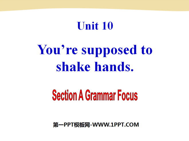 关键词:《You are supposed to shake hands》教学课件,人教版九年级下册英语课件,九年级英语幻灯片课件下载,《You are supposed to shake hands》PPT课件下载,.ppt格式