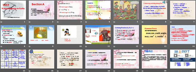 关键词:《It must belong to Carla》教学课件,人教版九年级下册英语课件,九年级英语幻灯片课件下载,《It must belong to Carla》PPT课件下载,.ppt格式