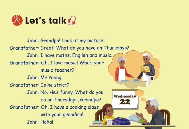 本课件通过动画的形式将《My week》中的lets talk展示给学生,形象生动,趣味性强,是很好的英语教学辅助课件。