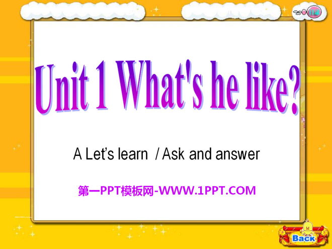 关键词:《What's he like?》教学课件,人教版五年级上册英语课件,五年级英语幻灯片课件下载,《What's he like?》PPT课件下载,.ppt格式