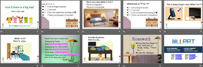 关键词:《There is a big bed》教学课件,人教版五年级上册英语课件,五年级英语幻灯片课件下载,《There is a big bed》PPT课件下载,.ppt格式