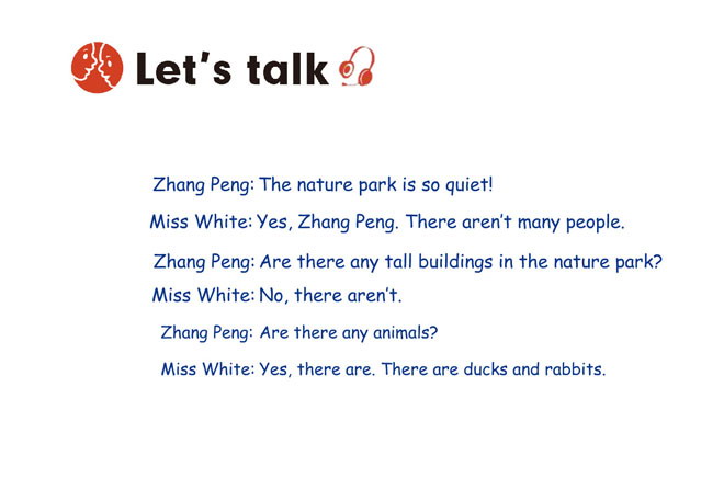 本课件通过动画的形式将《In a nature park》中的let's talk展示给学生,形象生动,趣味性强,是很好的英语教学辅助课件。