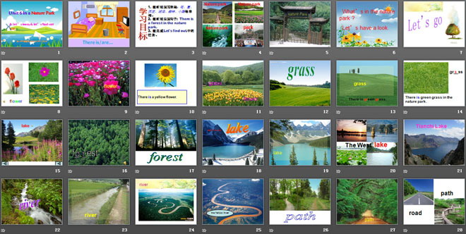 关键词:《In a nature park》教学课件,人教版五年级上册英语课件,五年级英语幻灯片课件下载,《In a nature park》PPT课件下载,.ppt格式