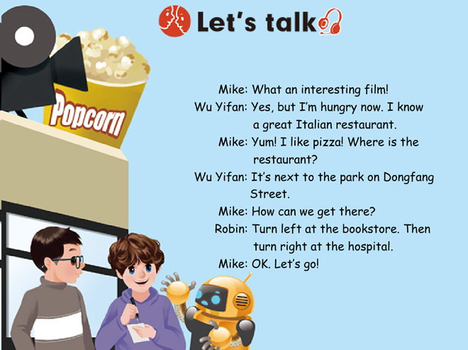 本课件通过动画的形式将《How can I get there?》中的let's talk展示给学生,形象生动,趣味性强,是很好的英语教学辅助课件。
