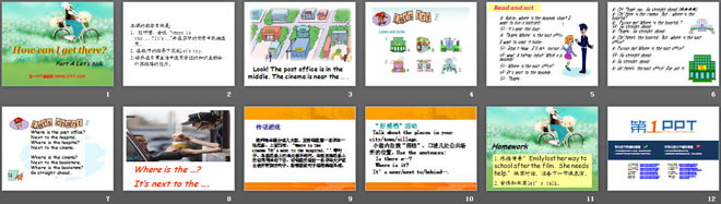 关键词:《How can I get there?》教学课件,人教PEP版六年级上册英语课件,六年级英语幻灯片课件下载,《How can I get there?》PPT课件下载,.ppt格式