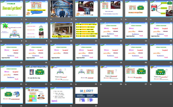 关键词:《How can I get there?》教学课件,人教PEP版六年级上册英语课件,六年级英语幻灯片课件下载,《How can I get there?》PPT课件下载,.ppt格式