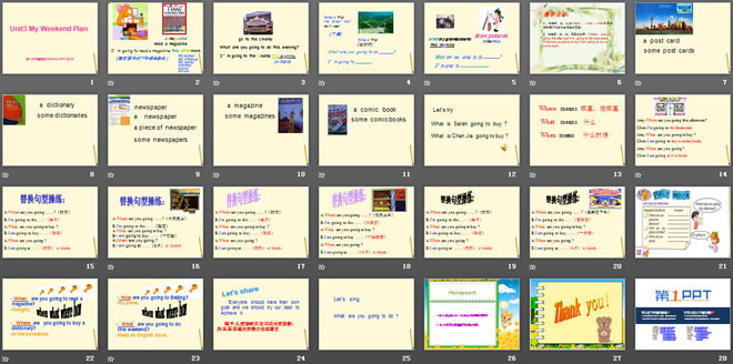 关键词:《My weekend plan》教学课件,人教PEP版六年级上册英语课件,六年级英语幻灯片课件下载,《My weekend plan》PPT课件下载,.ppt格式