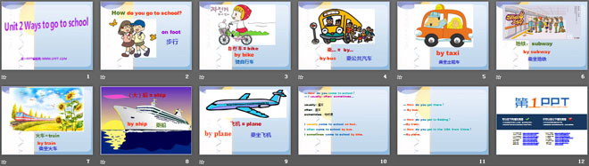 关键词:《Ways to go to school》教学课件,人教PEP版六年级上册英语课件,六年级英语幻灯片课件下载,《Ways to go to school》PPT课件下载,.ppt格式