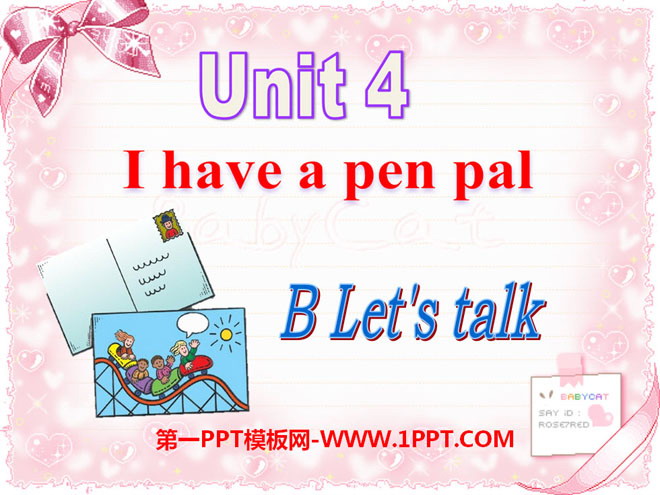 关键词:《I have a pen pal》教学课件,人教PEP版六年级上册英语课件,六年级英语幻灯片课件下载,《I have a pen pal》PPT课件下载,.ppt格式
