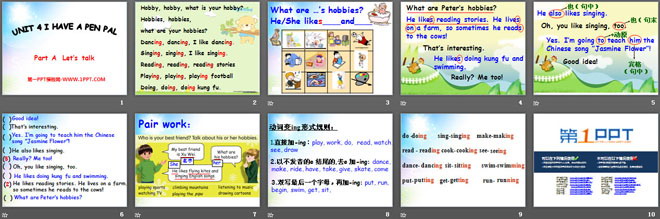 关键词:《I have a pen pal》教学课件,人教PEP版六年级上册英语课件,六年级英语幻灯片课件下载,《I have a pen pal》PPT课件下载,.ppt格式