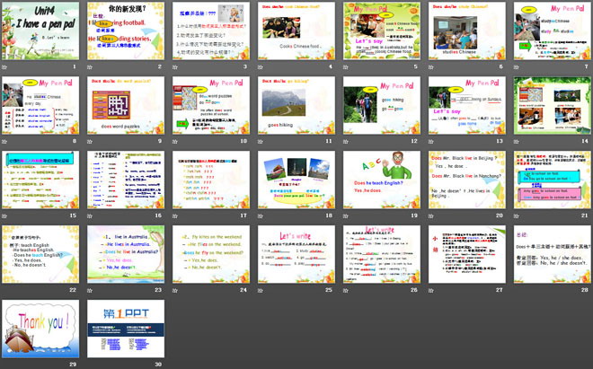关键词:《I have a pen pal》教学课件,人教PEP版六年级上册英语课件,六年级英语幻灯片课件下载,《I have a pen pal》PPT课件下载,.ppt格式
