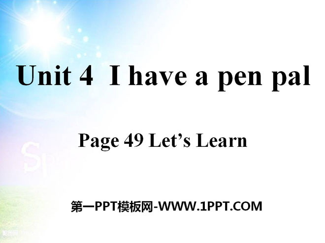 关键词:《I have a pen pal》教学课件,人教PEP版六年级上册英语课件,六年级英语幻灯片课件下载,《I have a pen pal》PPT课件下载,.ppt格式