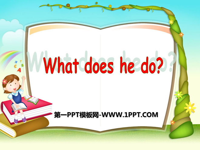 关键词:《What does he do?》教学课件,人教PEP版六年级上册英语课件,六年级英语幻灯片课件下载,《What does he do?》PPT课件下载,.ppt格式