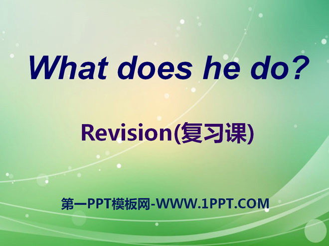 关键词:《What does he do?》教学课件,人教PEP版六年级上册英语课件,六年级英语幻灯片课件下载,《What does he do?》PPT课件下载,.ppt格式