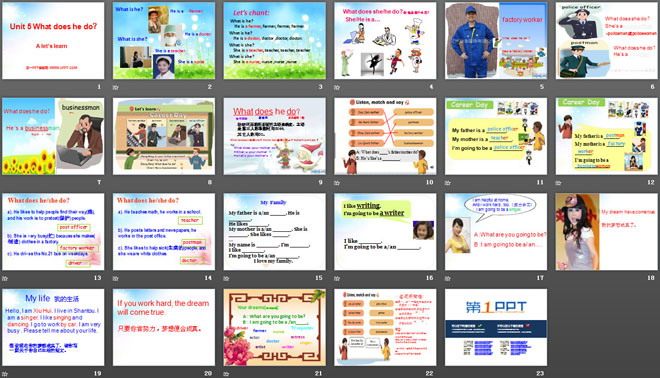 关键词:《What does he do?》教学课件,人教PEP版六年级上册英语课件,六年级英语幻灯片课件下载,《What does he do?》PPT课件下载,.ppt格式