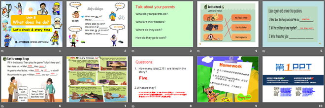 关键词:《What does he do?》教学课件,人教PEP版六年级上册英语课件,六年级英语幻灯片课件下载,《What does he do?》PPT课件下载,.ppt格式