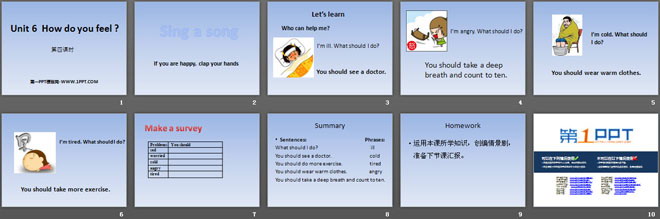 关键词:《How do you feel?》教学课件,人教PEP版六年级上册英语课件,六年级英语幻灯片课件下载,《How do you feel?》PPT课件下载,.ppt格式