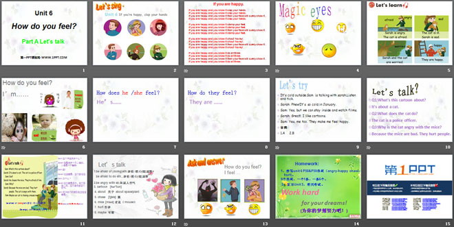 关键词:《How do you feel?》教学课件,人教PEP版六年级上册英语课件,六年级英语幻灯片课件下载,《How do you feel?》PPT课件下载,.ppt格式