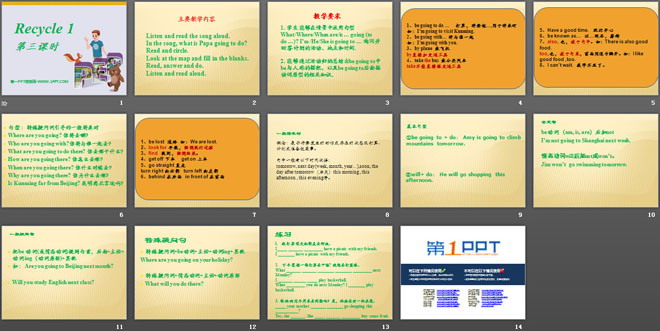2. 能够通过活动归纳总结出be going to中be与人称的搭配,以及be going to后面接动词原型的相关知识。