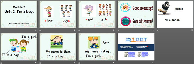 关键词:《I'm a boy》教学课件,外研版一起点一年级上册英语课件,一年级英语幻灯片课件下载,《I'm a boy》PPT课件下载,.ppt格式