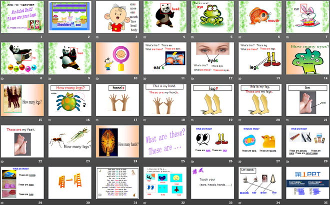 关键词:《These are your legs》教学课件,外研版一起点一年级下册英语课件,一年级英语幻灯片课件下载,《These are your legs》PPT课件下载,.ppt格式