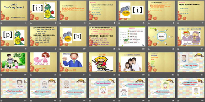 关键词:《That is my father》教学课件,外研版一起点一年级上册英语课件,一年级英语幻灯片课件下载,《That is my father》PPT课件下载,.ppt格式