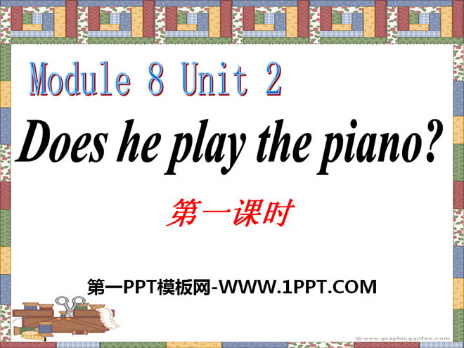 关键词:《Does he play the piano?》教学课件,外研版一起点二年级上册英语课件,二年级英语幻灯片课件下载,《Does he play the piano?》PPT课件下载,.ppt格式