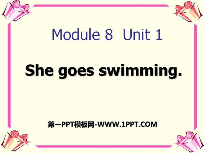 关键词:《She goes swimming》教学课件,外研版一起点二年级上册英语课件,二年级英语幻灯片课件下载,《She goes swimming》PPT课件下载,.ppt格式