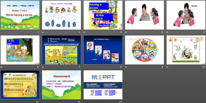 关键词:《We're having a picnic》教学课件,外研版一起点二年级下册英语课件,二年级英语幻灯片课件下载,《We're having a picnic》PPT课件下载,.ppt格式