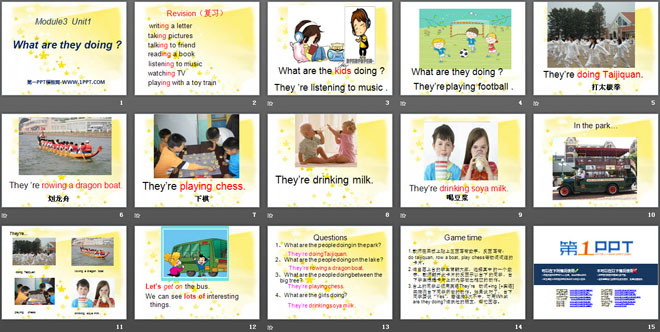 关键词:《What are you doing?》教学课件,外研版一起点二年级下册英语课件,二年级英语幻灯片课件下载,《What are you doing?》PPT课件下载,.ppt格式