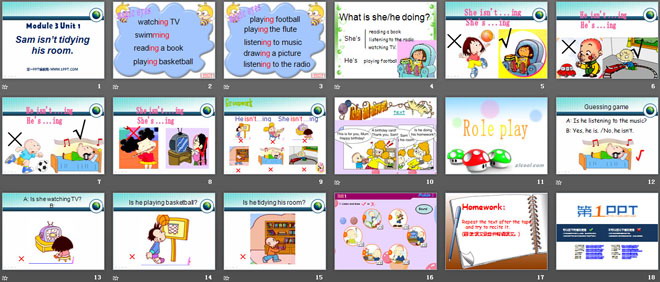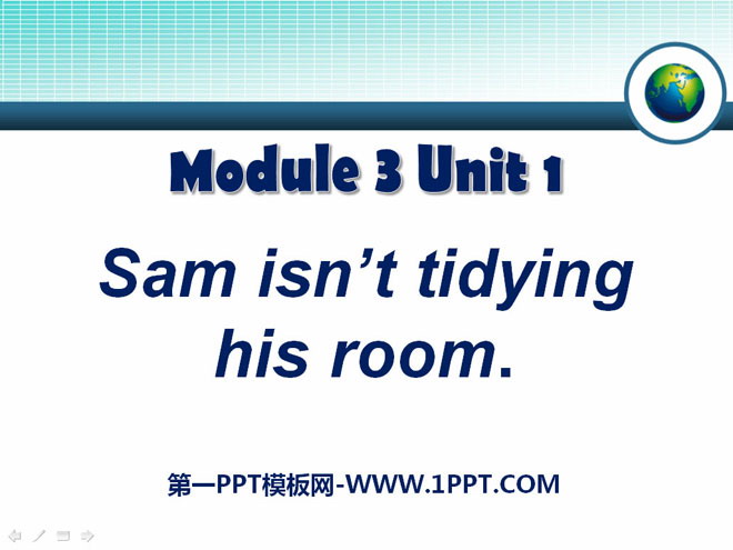关键词:《Sam isn't tidying his room》教学课件,外研版一起点二年级下册英语课件,二年级英语幻灯片课件下载,《Sam isn't tidying his room》PPT课件下载,.ppt格式