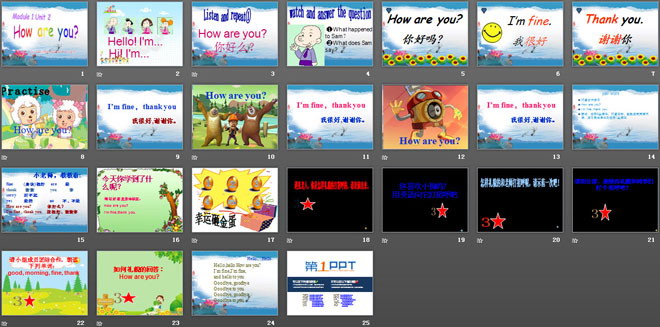 关键词:《How are you?》教学课件,外研版三起点三年级上册英语课件,三年级英语幻灯片课件下载,《How are you?》PPT课件下载,.ppt格式