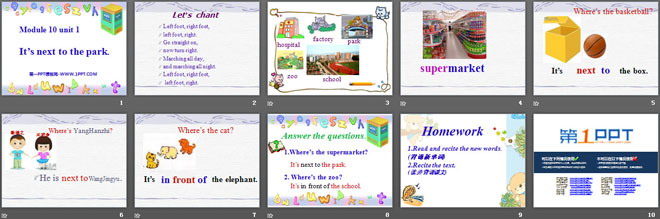 关键词:《It's next to the park》教学课件,外研版一起点二年级下册英语课件,二年级英语幻灯片课件下载,《It's next to the park》PPT课件下载,.ppt格式