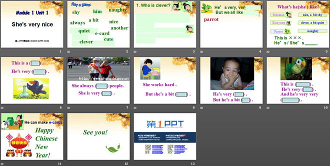 关键词:《She's very nice》教学课件,外研版一起点三年级下册英语课件,三年级英语幻灯片课件下载,《She's very nice》PPT课件下载,.ppt格式